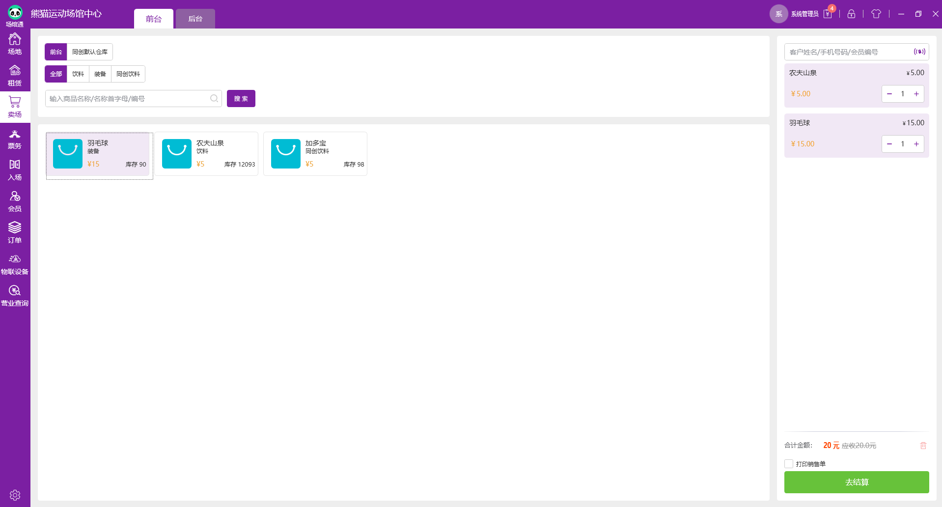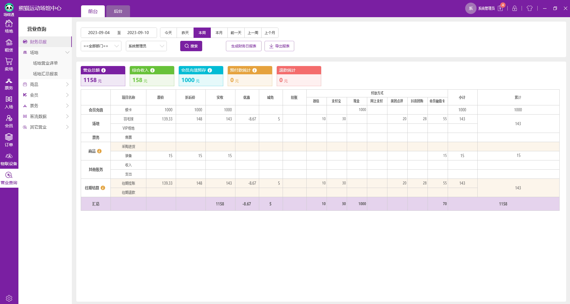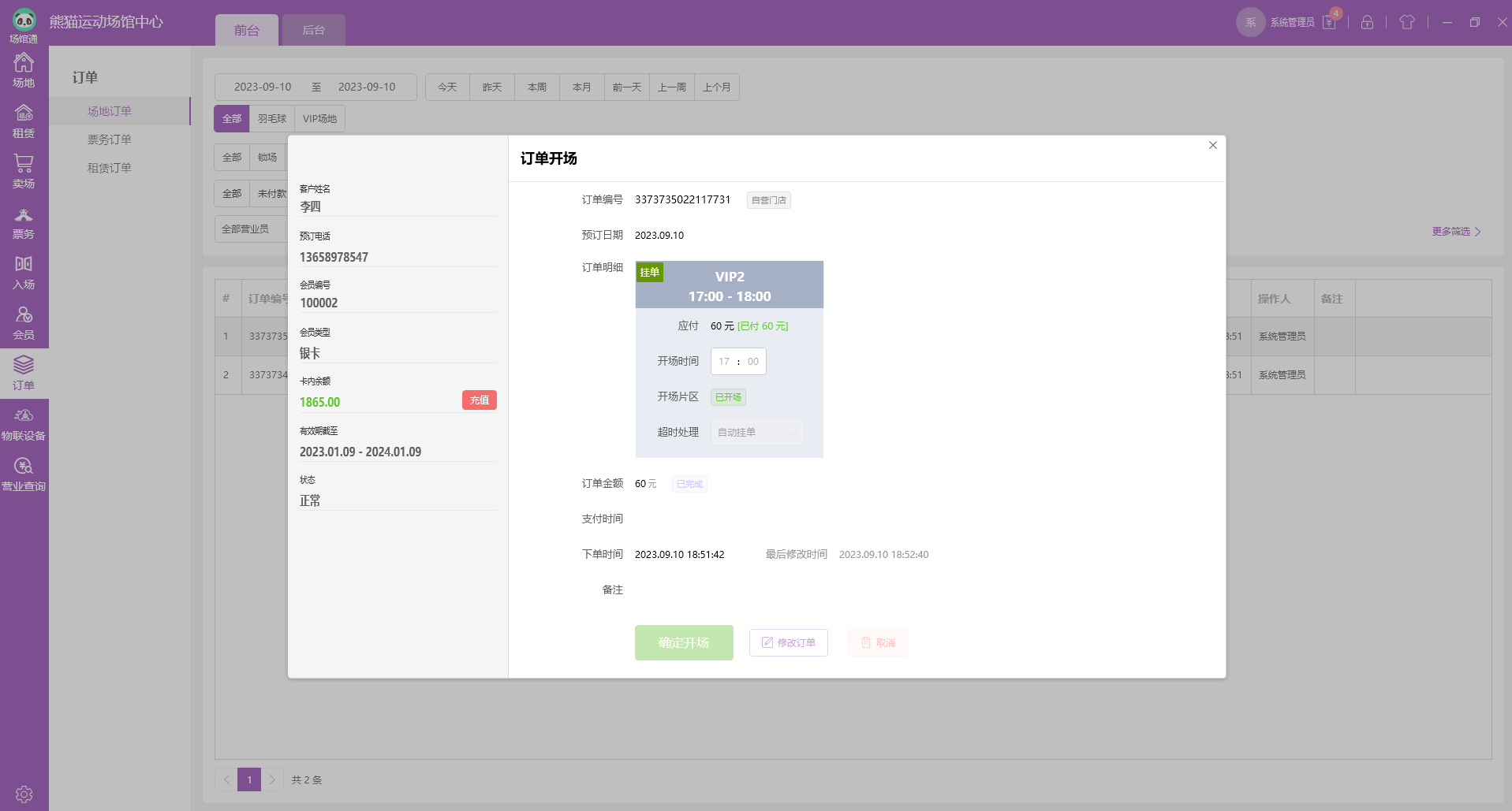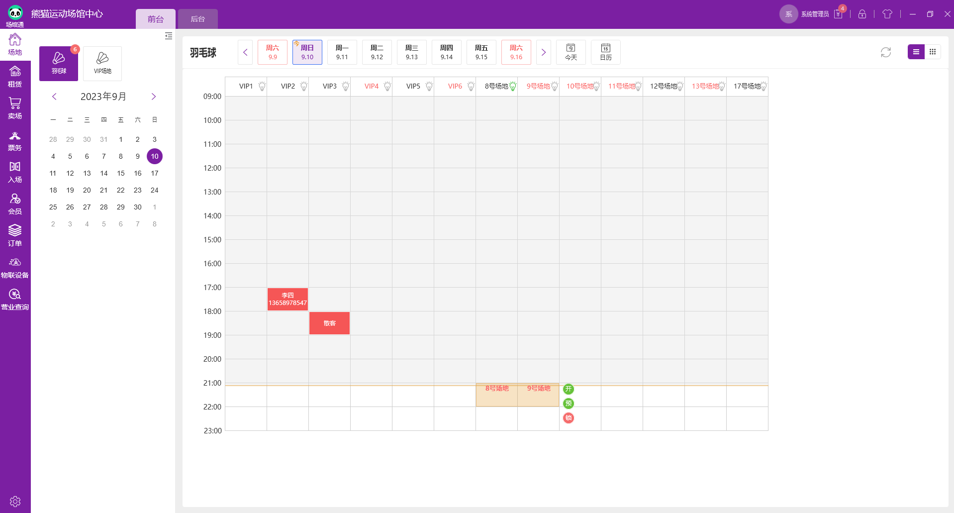 各项标准功能和定制化扩展功能,覆盖前台运营、会员管理、商品管理、预订等众多功能,一站式满足您的场馆运营管理